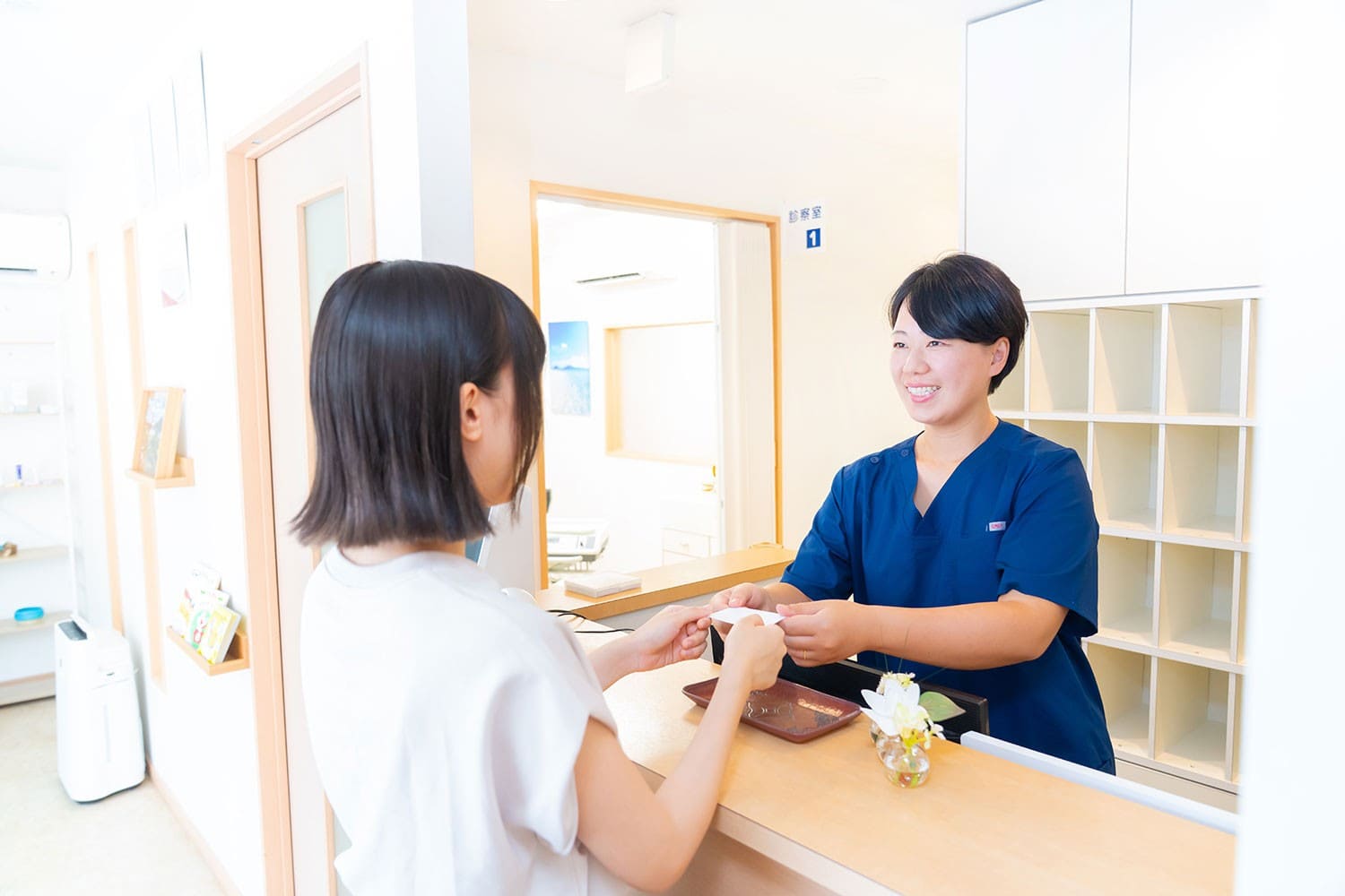 初診時は、問診票の記入・保険証の確認等を行うため予約時間の10分程度早めにご来院いただくと問診や診療にしっかりと時間をとることができ、スムーズにご案内できます。